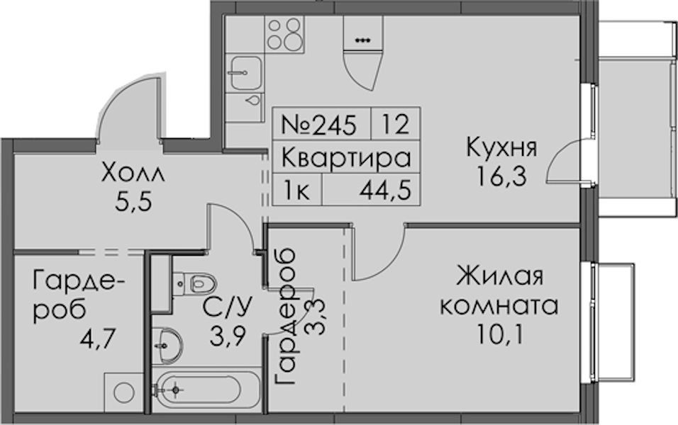 - Площадь44,5 м2