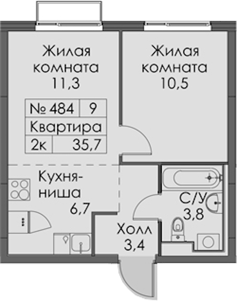 - Площадь35,7 м2