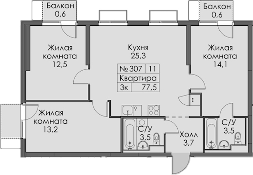 - Площадь77,5 м2