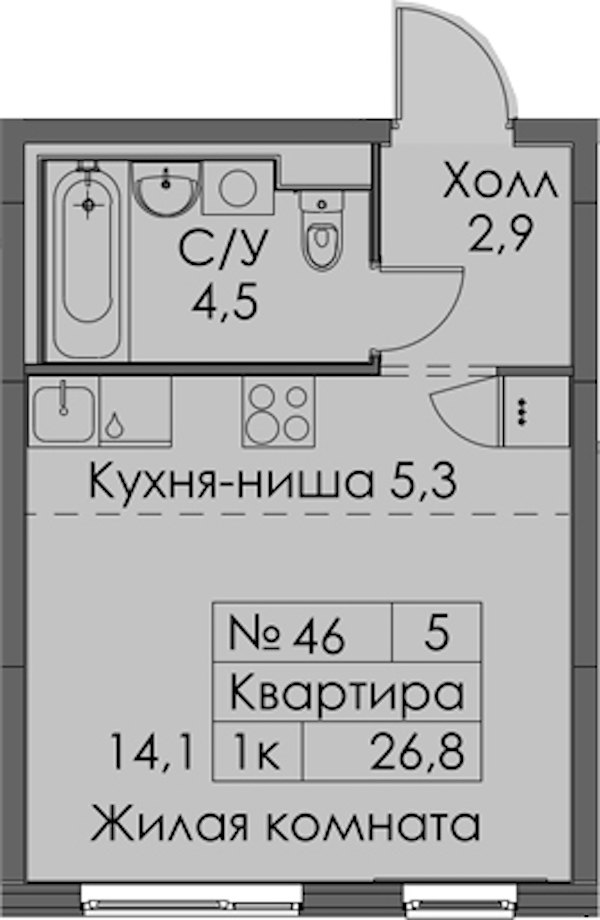 - Площадь26,8 м2
