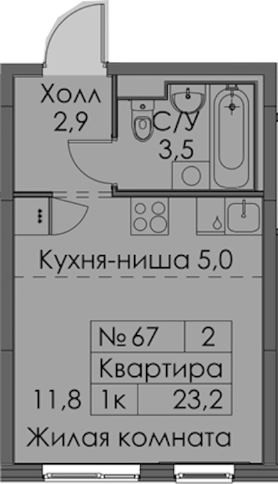 Квартира-студия на 11-ом этаже 23,2 кв.м