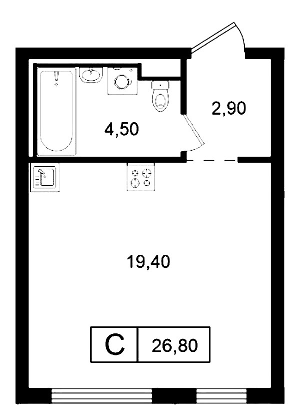 • Площадь26,8 м2