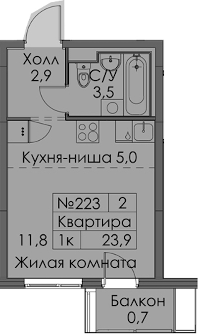 - Площадь23,9 м2