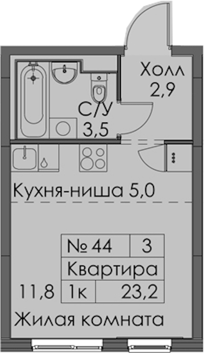 Квартира-студия на 6-ом этаже 23,2 кв.м