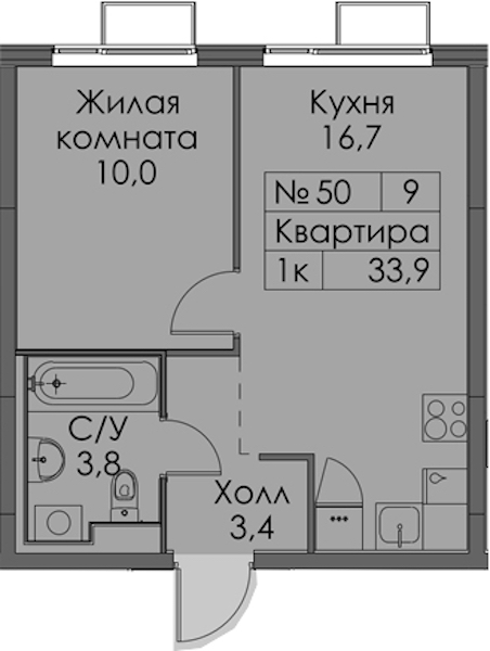 - Площадь33,9 м2