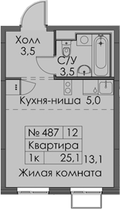 Квартира-студия на 4-ом этаже 25,1 кв.м