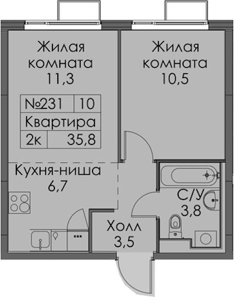 - Площадь35,8 м2