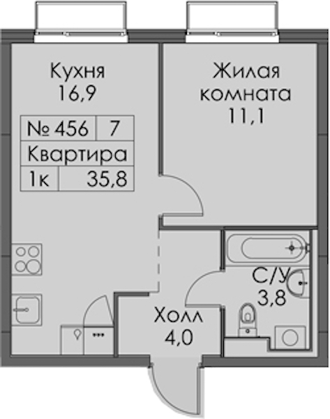 - Площадь35,8 м2