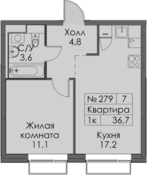 - Площадь36,7 м2
