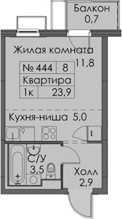 - Площадь23,9 м2
