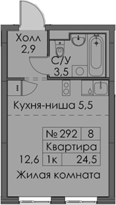 Квартира-студия на 5-ом этаже 24,5 кв.м