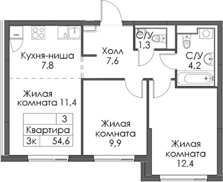 - Площадь54,6 м2