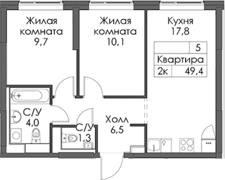 - Площадь49,4 м2