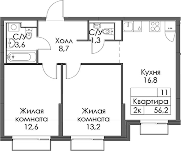 • Площадь56,2 м2