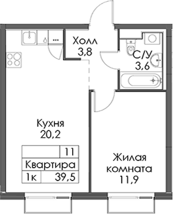 Однокомнатная квартира на 12-ом этаже 39,5 кв.м