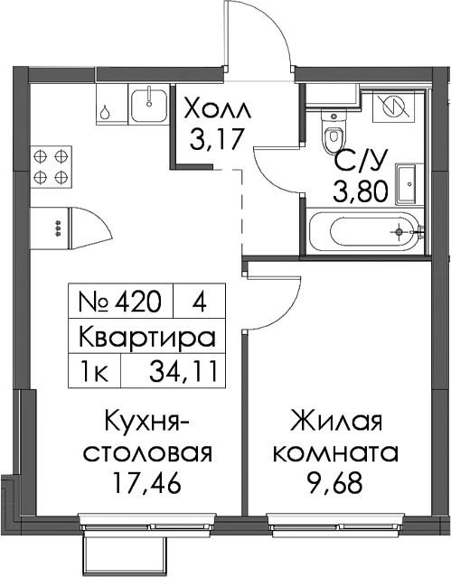 - Площадь34,11 м2