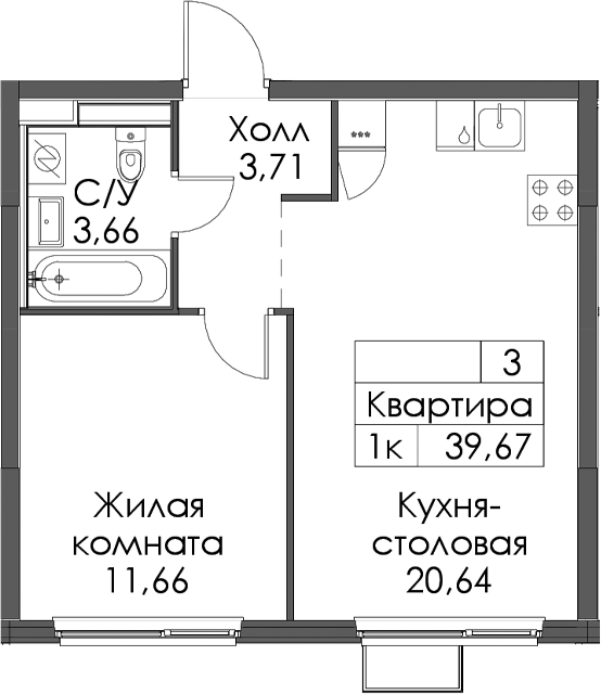 • Площадь39,67 м2