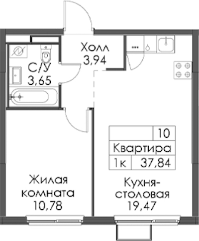 - Площадь37,84 м2