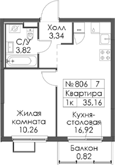 - Площадь35,16 м2