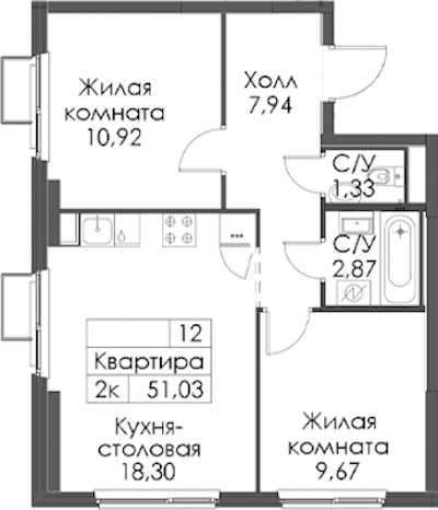 - Площадь51,03 м2