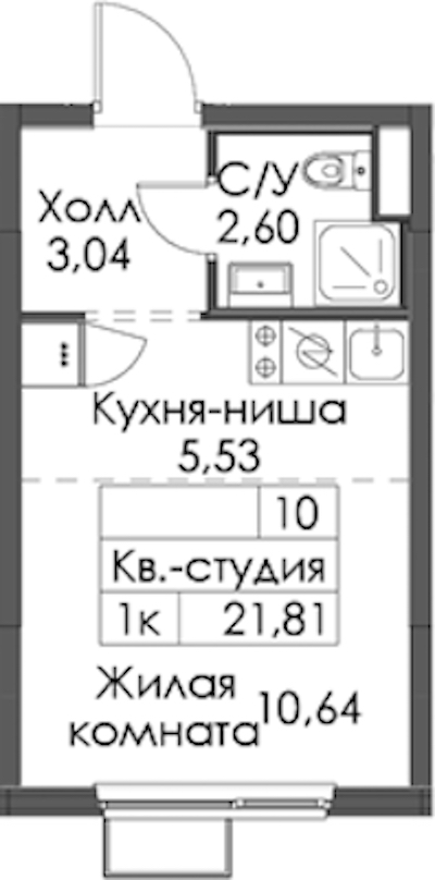 Квартира-студия на 4-ом этаже 21,81 кв.м