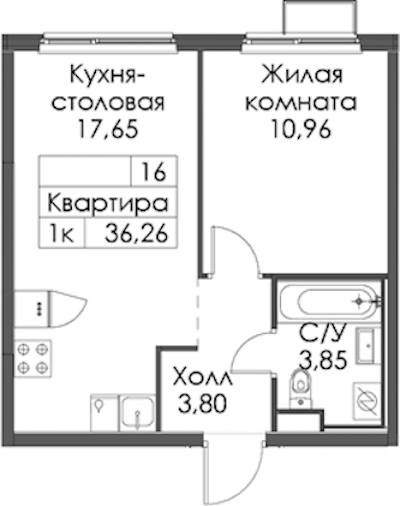 - Площадь36,26 м2
