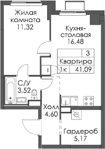 - Площадь41,09 м2