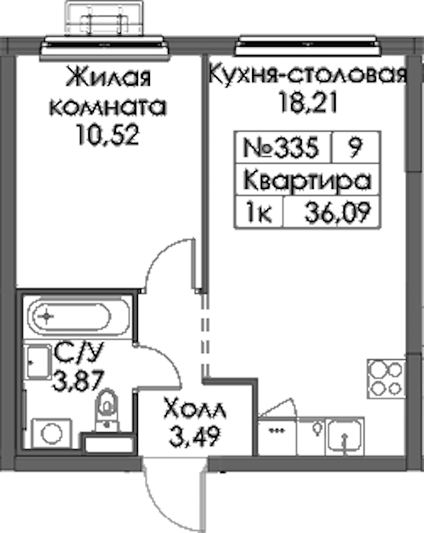 - Площадь36,09 м2