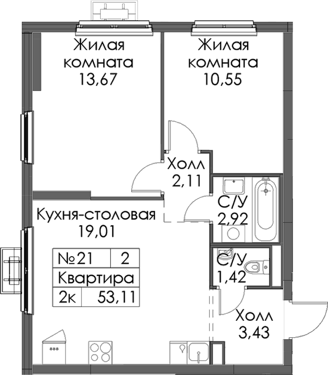 - Площадь53,11 м2