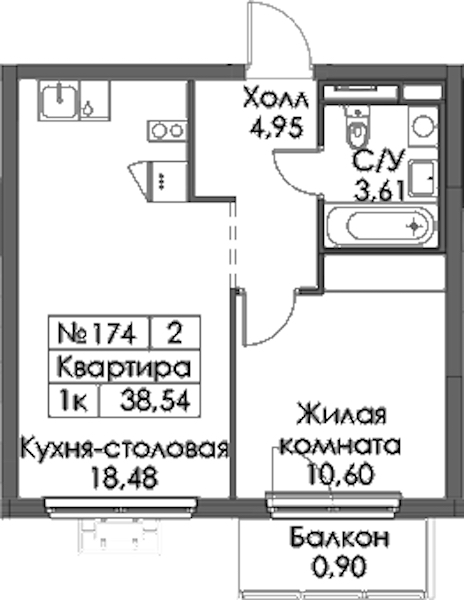 • Площадь38,54 м2