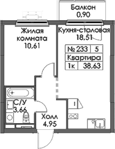- Площадь38,63 м2