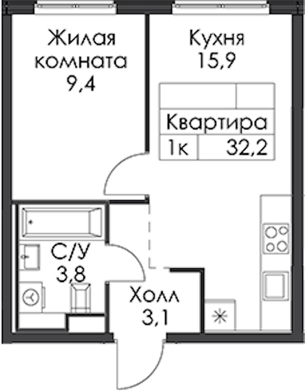 • Площадь32,2 м2
