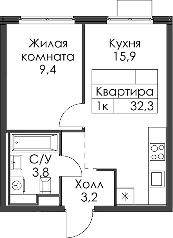 • Площадь32,3 м2