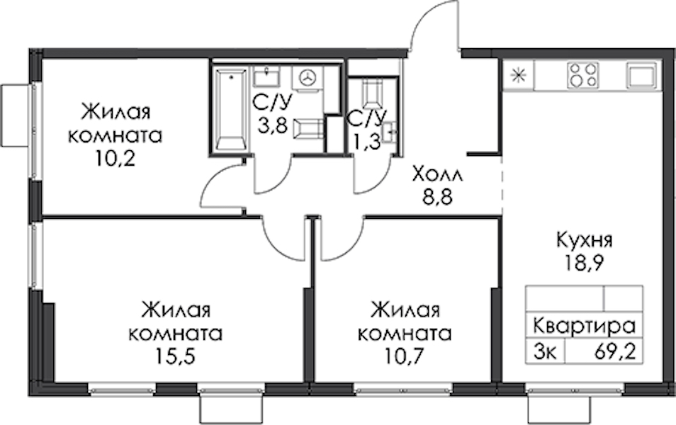 • Площадь69,2 м2
